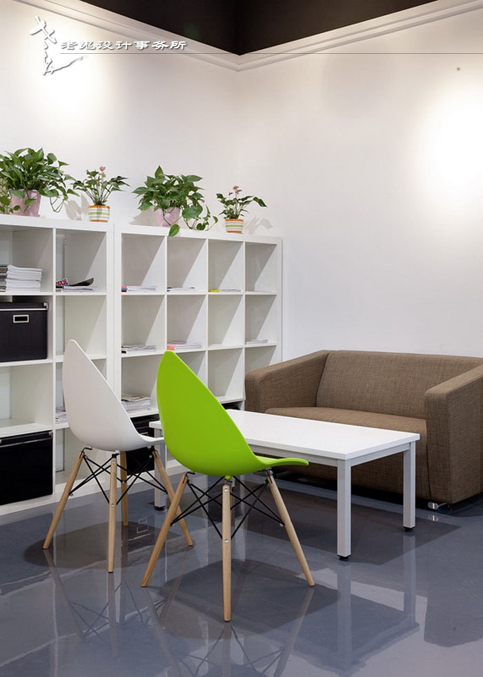開放式的辦公區便于交流與合作,整個辦公空間設計除了建筑結構柱之外,沒有多余的視線阻隔,廠房式的辦公空間,帶來的是一份輕松、別致的辦公新體驗。對于一家提倡現代都市新生活的企業而言,這樣的氣質是需要得以倡導的,從而讓每個員工都能在此感受到工作的樂趣。值得一提的是,在開放式的辦公空間中,相老鬼設計團隊讓較獨立的交談區始終保持著與整個空間呼應的節奏。獨立的辦公間依舊會保持輕松活潑的姿態,將工作與休閑融為一體,木質的書柜和咖啡色的沙發搭配出了一種居家般的休閑感。微小、局部的改變,更容易讓員工感受到生活的美學。