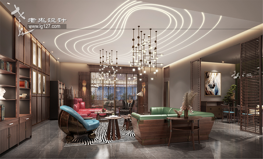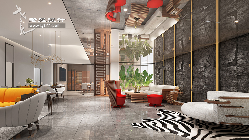 局部辦公空間設計,看上去非常的粗狂和狂野的背景墻也不是中規中矩的布局。在色彩搭配上,老鬼設計團隊也始終保持一種“大膽”的自由氣息。