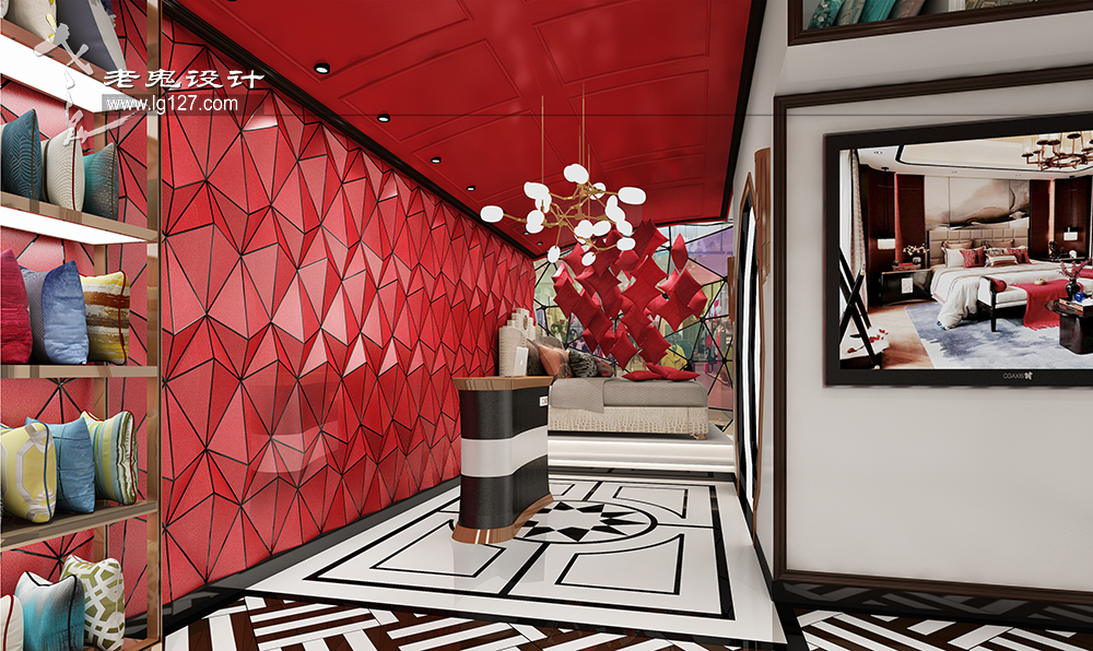 設計說明:西格布藝展廳設計,老鬼設計團隊在設計風格定位上,運用一些經典元素,既不過分張揚,而又恰到好處地把簡約奢華之氣滲透到每個角落。以簡潔的方式詮釋奢華,注重設計感,演繹出高品質的優質的一個現代時尚布藝展廳。該展廳不僅只是簡單意義的布藝展廳,意在通過設計傳遞出品牌卓越的布藝品質和企業文化。該展廳空間不僅只是簡單意義的布藝展廳,意在通過設計傳遞出品牌卓越的布藝品質和企業文化。整個展覽空間呈現的不僅熱情與冷靜同在,而且活力與沉穩融合。而這也正是西格布藝品牌文化的核心。
