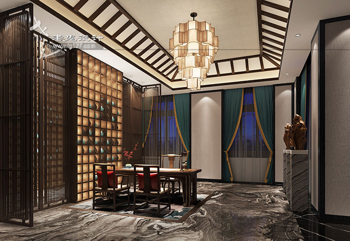 無論是在東方人或西方人的眼中,東方文化都是帶有神秘氣質與魅力的。此案新中式別墅設計,老鬼設計團隊運用設計筆觸展示底蘊深厚的傳統中式文化,以以典雅的線條和色彩詮釋著傳統中國文化的精髓,并以獨特的韻味來表達自身的中國色彩。