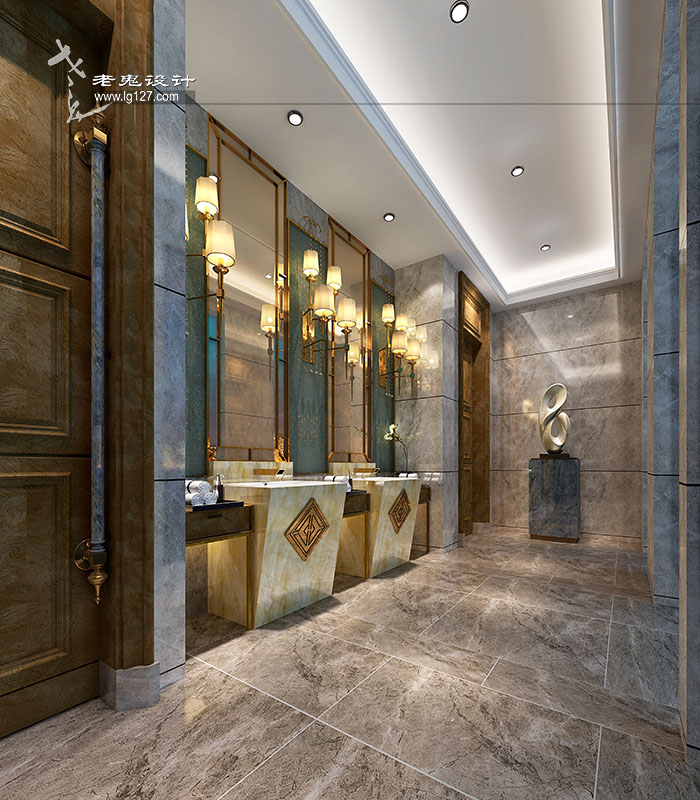 洗手間,高品質(zhì)的體驗(yàn)藏在所有的細(xì)節(jié)里。金屬的點(diǎn)綴增加空間的時(shí)尚氣質(zhì),希望空間在延續(xù)整體獨(dú)特氣質(zhì)的同時(shí),表達(dá)出一種高品質(zhì)的生活態(tài)度,一種簡潔時(shí)尚的手段去演繹古典氣質(zhì),創(chuàng)造大氣典雅,純凈雅致的空間舒適度。目的是構(gòu)建一個(gè)具有文化精粹的主題空間。