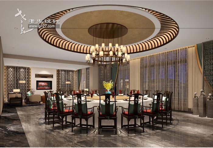 全日制餐廳的燈光設計,中國紅墻面上的魚掛件,都在朝一個方向聚集,為空間注入了靈氣與雅趣。聽,那潺潺的流水聲,將靈魂安放于此,足矣!