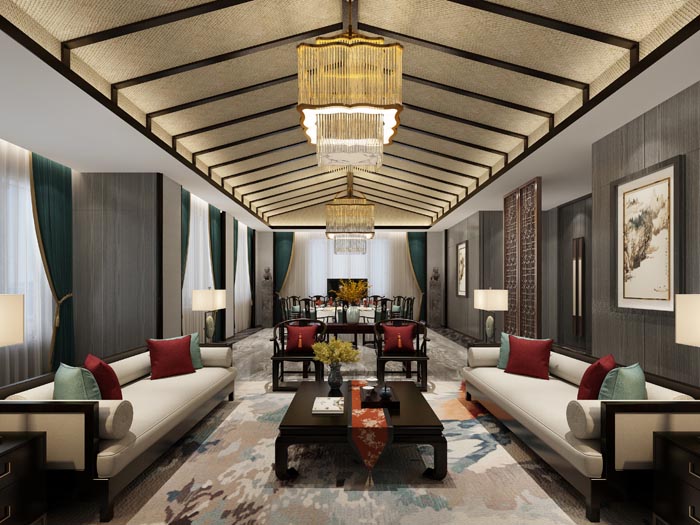本酒店的空間設計,在深度挖掘和詮釋江南水鄉文化的基礎上,從中提煉色彩、布局、材質 、藝術為元素,通過東方禪意美學的組合,以現代的設計手法創造出豐富的視感,讓空間呈現出:休閑而不失雅趣,氤氳幽靜的東方韻味,而又不乏現代品位。