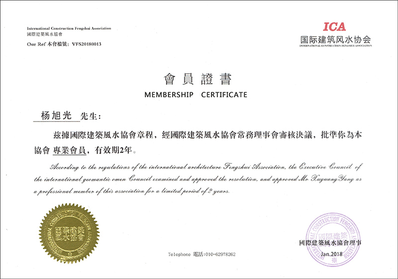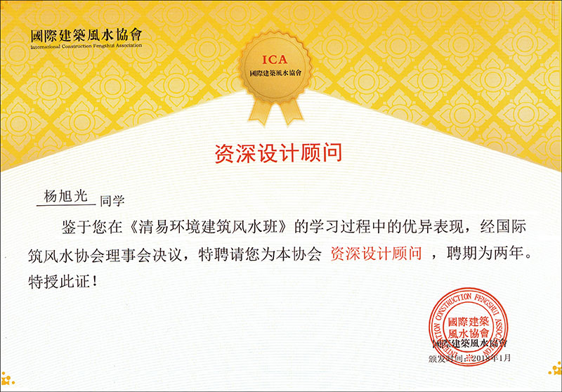 國際建筑風水協(xié)會優(yōu)秀學員獎