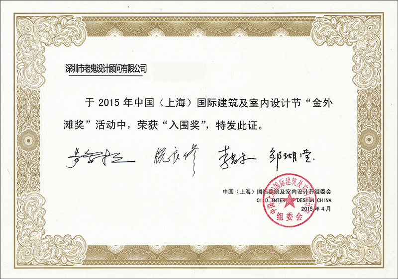 中國(上海)國際建筑及室內設計節(jié)組委會證書