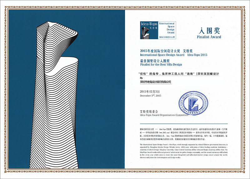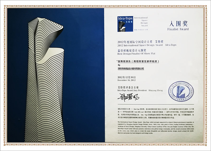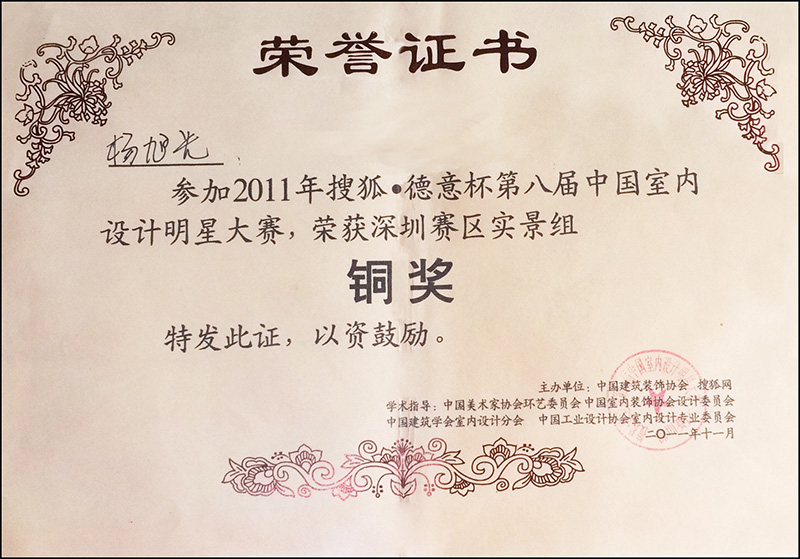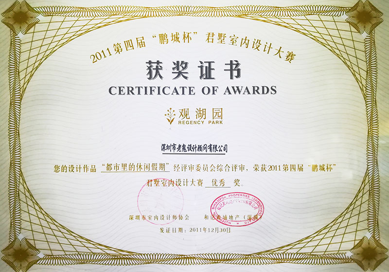 2011第四屆“鵬城杯”君墅室內設計大賽獲獎證書