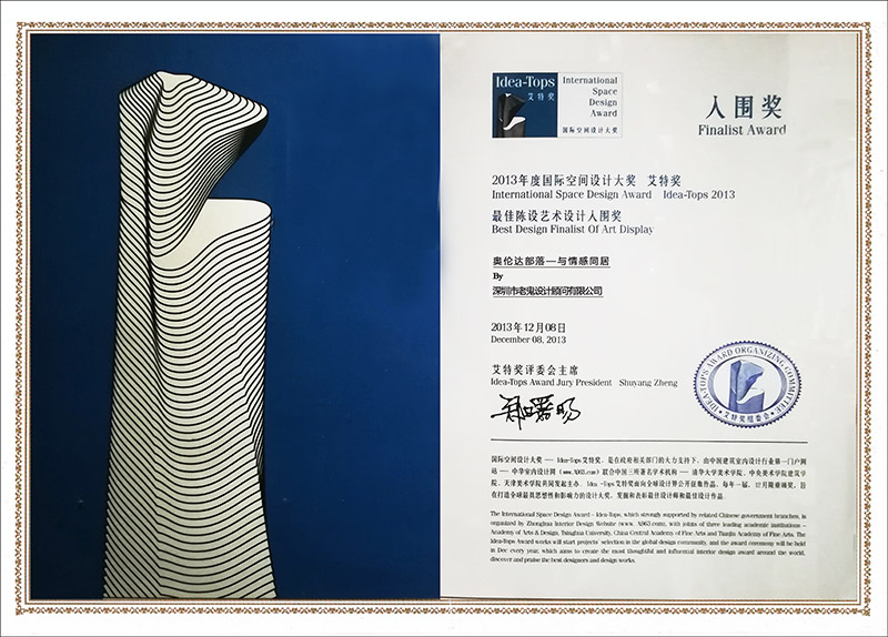 深圳市文化家居創(chuàng)意設計大賽獲獎證書