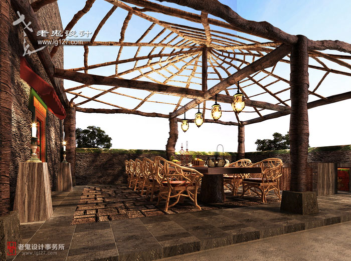 為了滿足旅行途中品茶、燒烤、咖啡、觀影的需求,酒店方還特別針對這些需求開辟了這些功能區。露天烤吧以木為主體結構設計成蜘蛛網狀結構,一邊品茶燒烤,一邊遠眺遠處的風景,抬頭猶如深入原始自然。