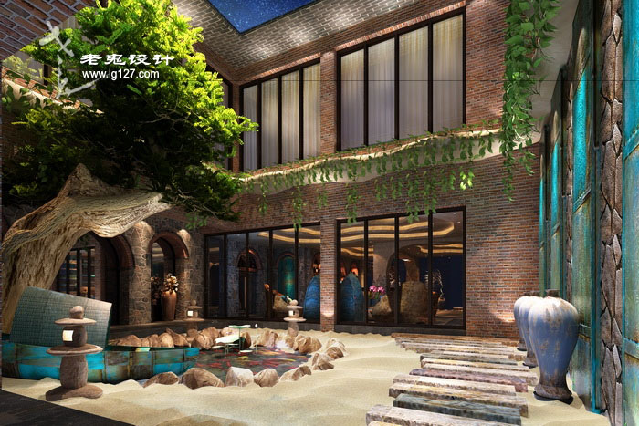 本酒店項目的設計試圖從文化藝術空間著手,通過設計來實現一種人文精神與自然氣質相交融的空間意境。大自然的優勢,賦予了設計的無限可能,設計師老鬼依舊堅持從原生態的生活與自然元素出發,構建一種隱逸而美好的休閑體驗。