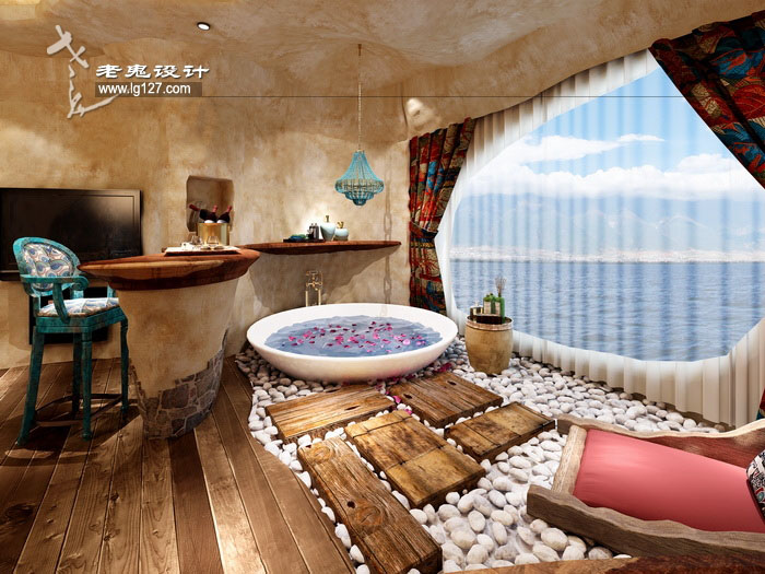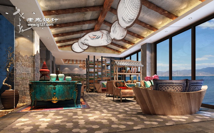 本案設計重點突出地域特色、自然環保、藝術氣息和原生態的生活品質,通過這些詮釋金梭島的迷人休閑之旅。一種閑情逸致,一種精致慢生活,一種彌漫著藝術的文化空間,這便是設計師老鬼在大理金梭島帝貝精品文化酒店要講述的故事。